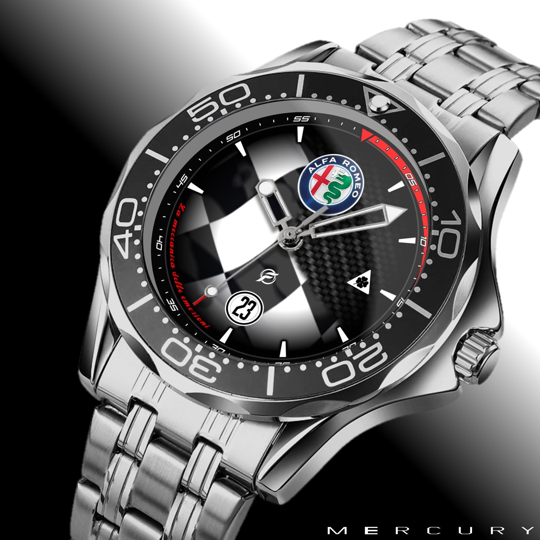 Caratteristiche tecniche dell'orologio Mercury: confezione in cartone rivestito inciso a laser. Il quadrante presenta una superficie stampata con indici sovraesposti. Design unisex. La cassa ha un diametro di 43 mm ed è realizzata in acciaio inossidabile. Il cinturino, anch'esso in acciaio inossidabile, ha una larghezza di 20 mm e utilizza un sistema di chiusura con gancio rapido. L'orologio è alimentato da un movimento al quarzo Epson a batteria. Il peso totale è di 136 grammi e offre una resistenza all'acqua fino a 3 ATM.