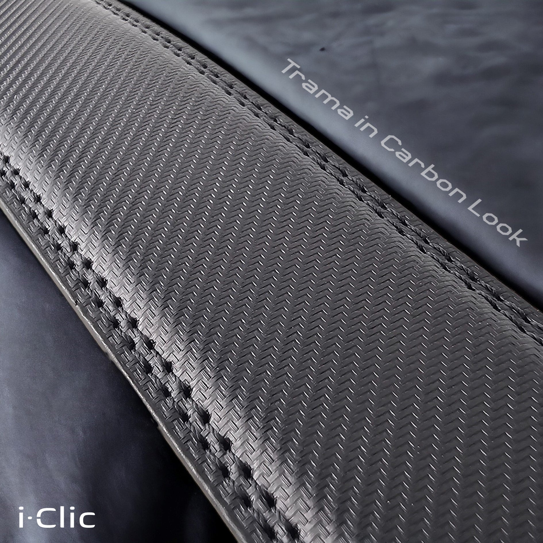 Caratteristiche tecniche della cintura i-Clic: confezione con trama Black incisa a laser. Realizzata in pelle PU in microfibra, con lunghezza di 120 cm (accorciabile) e larghezza di 3,5 cm. Dotata di un sistema di chiusura a cricchetto/fascetta, offre una regolazione a scatto ottimale con sgancio rapido. Design Carbon Look con inserti in pelle beige. Colore nero.