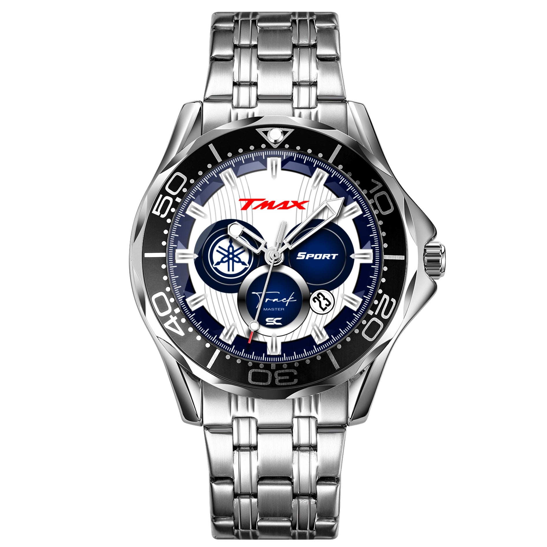 L'orologio monta un movimento al quarzo Epson giapponese con datario.