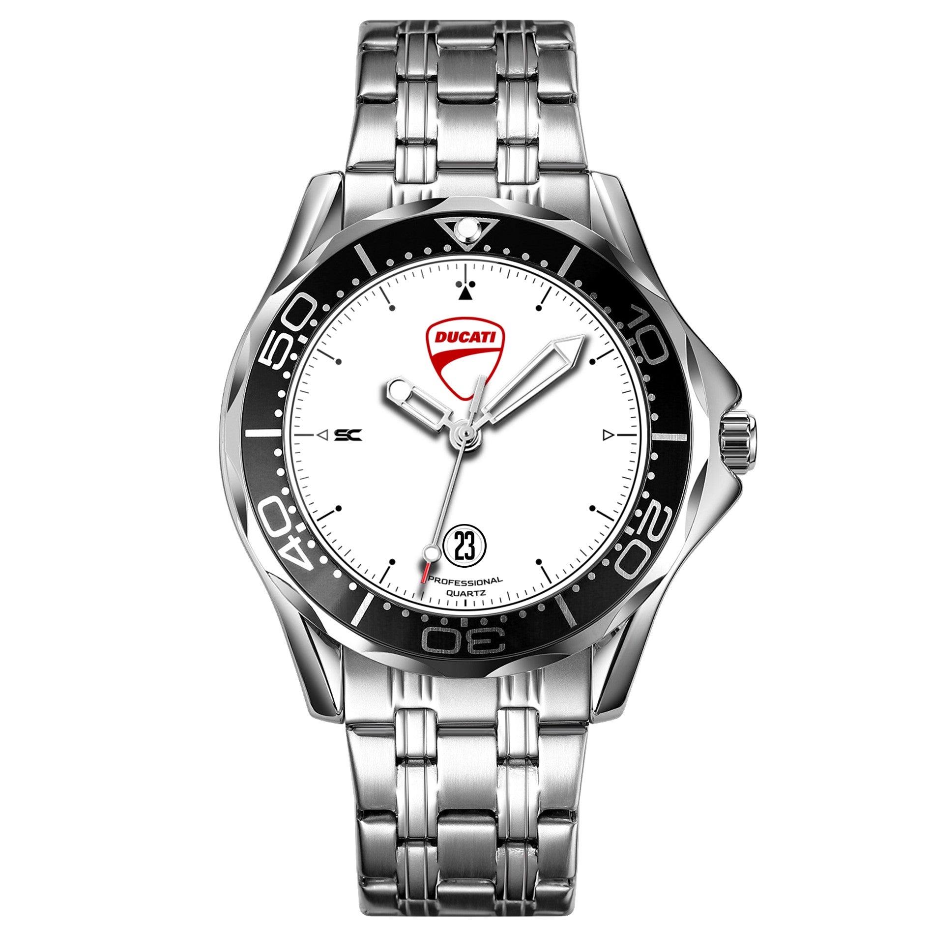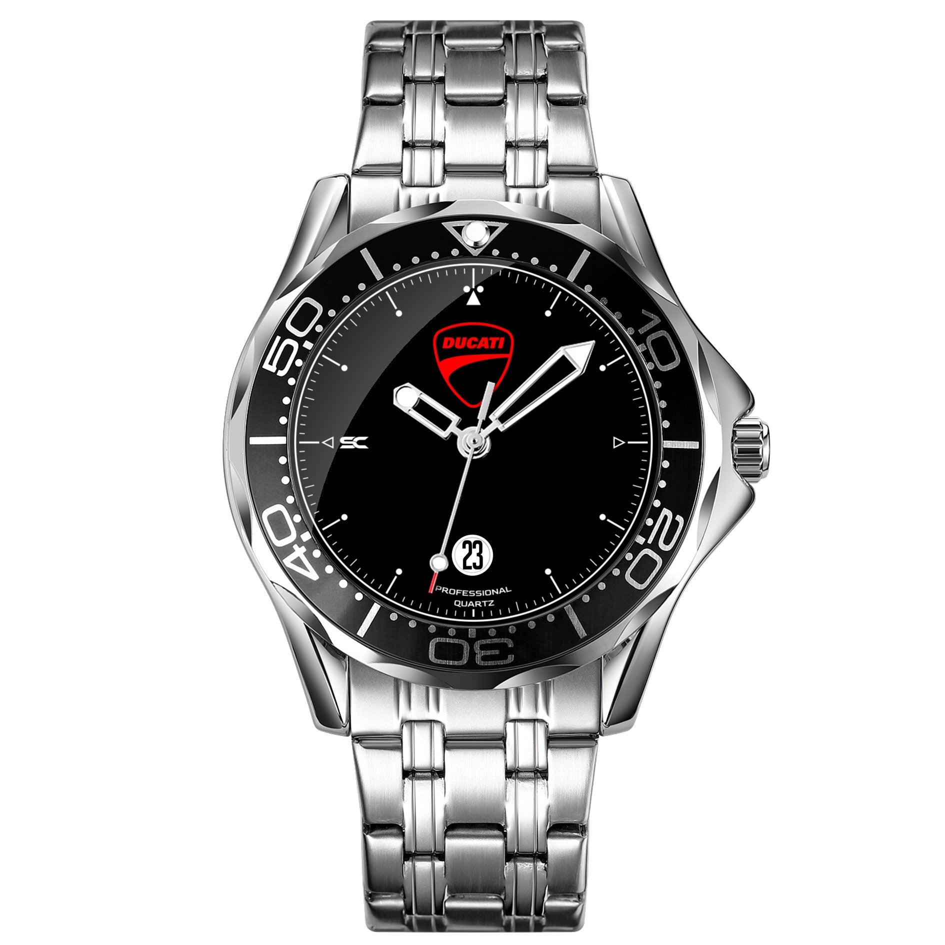 L'orologio monta un movimento al quarzo Epson giapponese con datario.